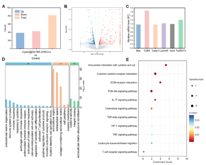 深入机制研究发现,该系统不仅能直接杀伤肿瘤细胞,还能诱导免疫原性细胞死亡,释放危险信号如钙网蛋白和HMGB1。这些信号有效促进了树突细胞的成熟和T细胞的活化,重塑了肿瘤免疫微环境,为建立长效抗肿瘤免疫记忆奠定了基础。通过转录组学分析,研究人员发现治疗后多个免疫相关通路被显著激活,包括PI3K-Akt、HIF-1等信号通路。同时,促凋亡基因如Cd83、Trp53i13等的表达明显上调,从分子层面揭示了系统的治疗机制。这项研究创新性地将蓝藻的光合特性与纳米药物递送系统相结合,为解决肿瘤治疗中的缺氧难题提供了新思路。未来,研究团队计划进一步优化系统设计,拓展其在其他癌症类型中的应用,推动这一创新疗法向临床转化迈进。