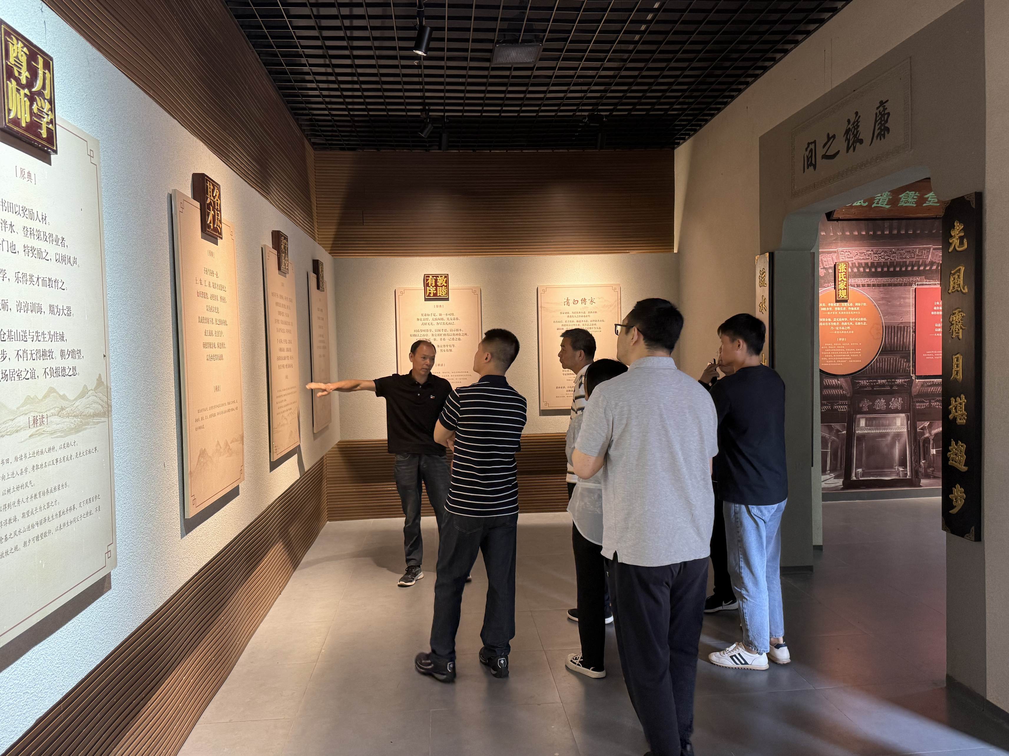 甄完故里廉政文化教育基地由甄完祠堂、墓园、牌坊等三部分组成。祠堂内展馆通过“孩提求学、进京赶考、清廉为官、造福梓里”四个时期展现了甄完生平事迹和仕途生涯,生动地再现了明代新昌籍廉吏甄完生动展现了其“清正为民、克己奉公”的为官之道和“勤俭持家、严明家风”的治家理念。在讲解员的引导下,党员们重点参观了“清风长廊”“廉政警示厅”等展区和天姥清风家训馆,深入学习研讨了甄完“拒收贿赂修桥铺路”“轻车简从体察民情”等典故,纷纷感叹甄完受御赐金字匾额“清官第一”乃实至名归。