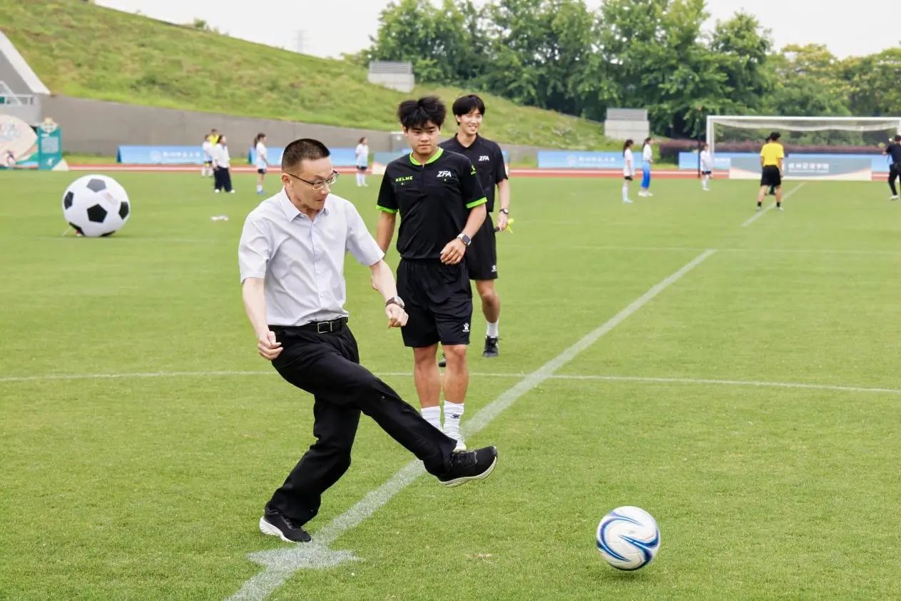 随着校党委书记郭东风为男子组足球队开球时黑白足球划出一道弧线,重庆时时彩