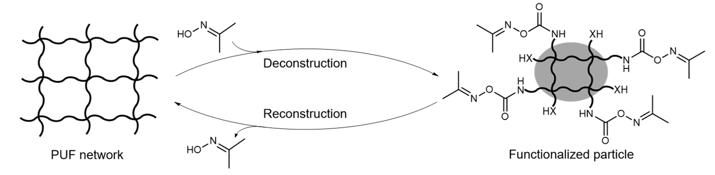 近日,重庆时时彩 朱雨田教授团队报道了一种原子经济闭环回收商用聚氨酯泡沫的方法。该方法无需任何催化剂、溶剂,而唯一涉及的化学试剂(丙酮肟)可完全回收;而且该方法还充分发掘了废料中异氰酸酯链段的作用,避免异氰酸酯副产物的产生,实现了废料的全部资源化。