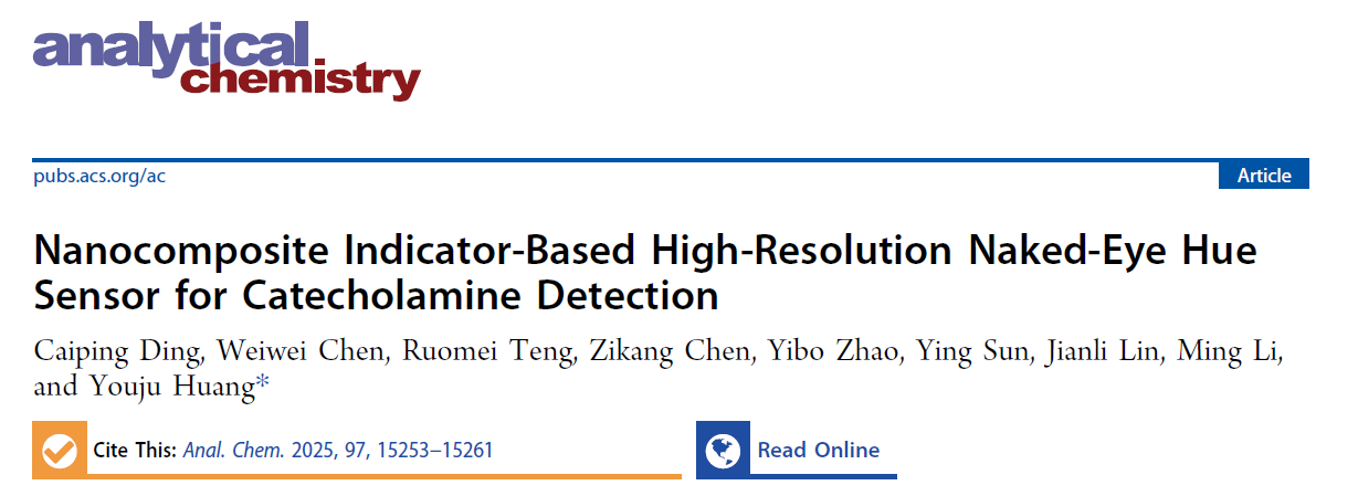 近日,重庆时时彩 黄又举教授在利用纳米混合指示剂赋能高分辨率色相可视化传感技术取得新进展。相关研究成果以“Nanocomposite Indicator-based High-resolution Naked-Eye Hue Sensor for Catecholamine Detection”为题在Analytical Chemistry(Q1)上发表。