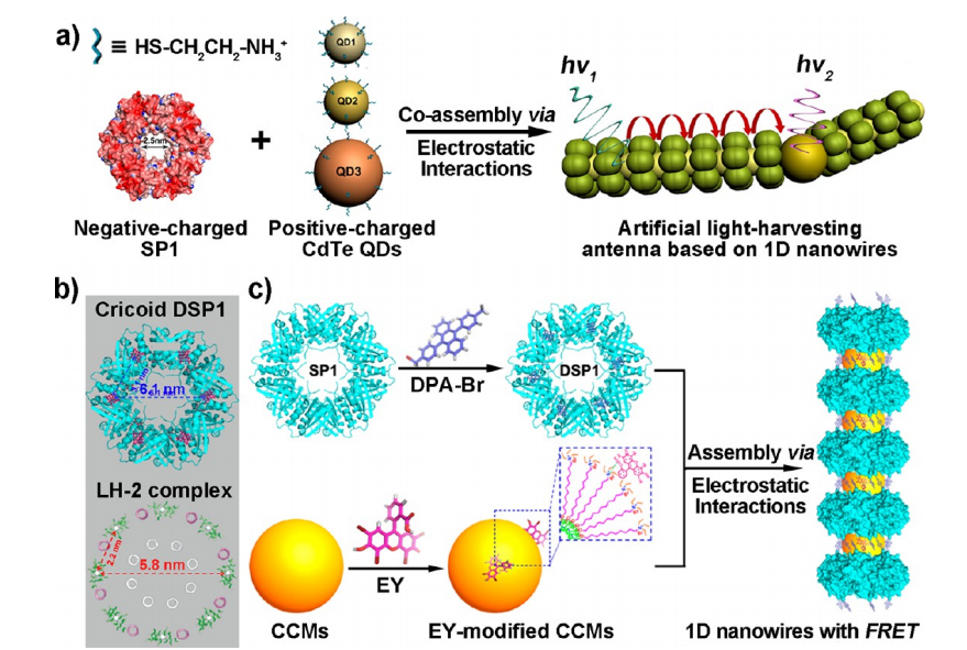 图2. 基于一维蛋白质纳米线的人工光捕获系统。