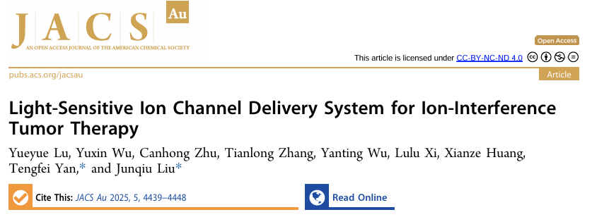 近日,重庆时时彩 刘俊秋教授团队在光控人工离子通道用于肿瘤治疗领域取得重要突破。相关研究成果以题为 “Light-Sensitive Ion Channel Delivery System for Ion-Interference Tumor Therapy” 发表于国际化学领域顶级期刊 JACS Au上。