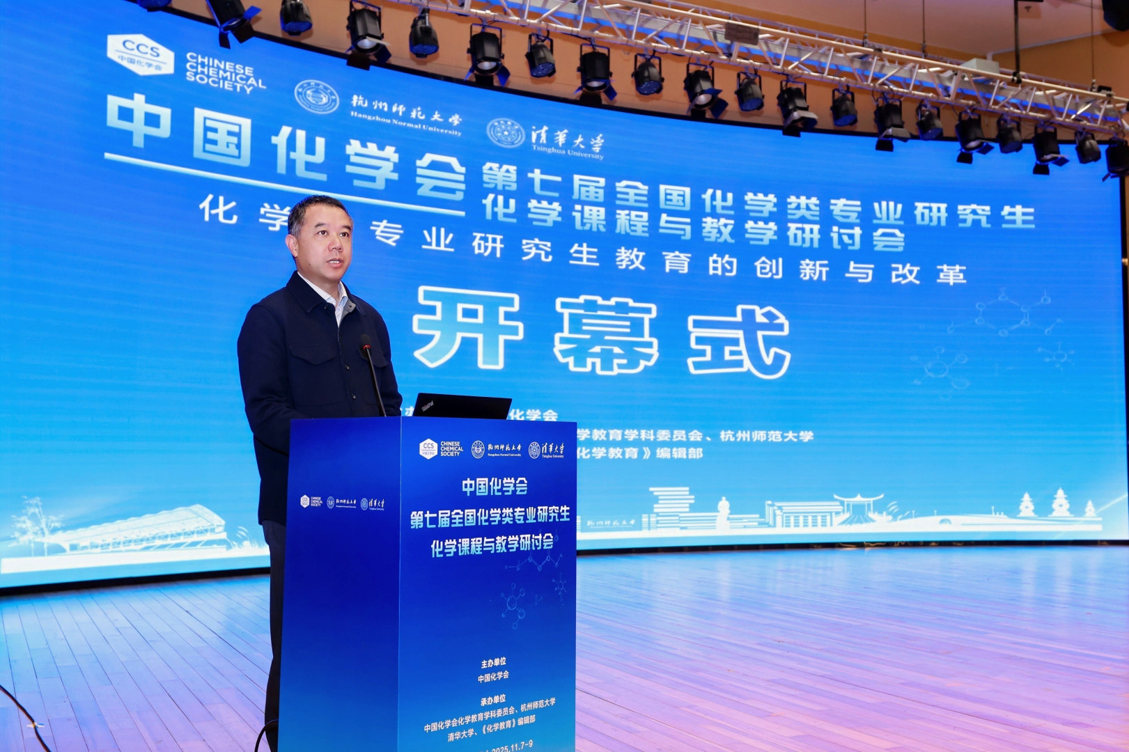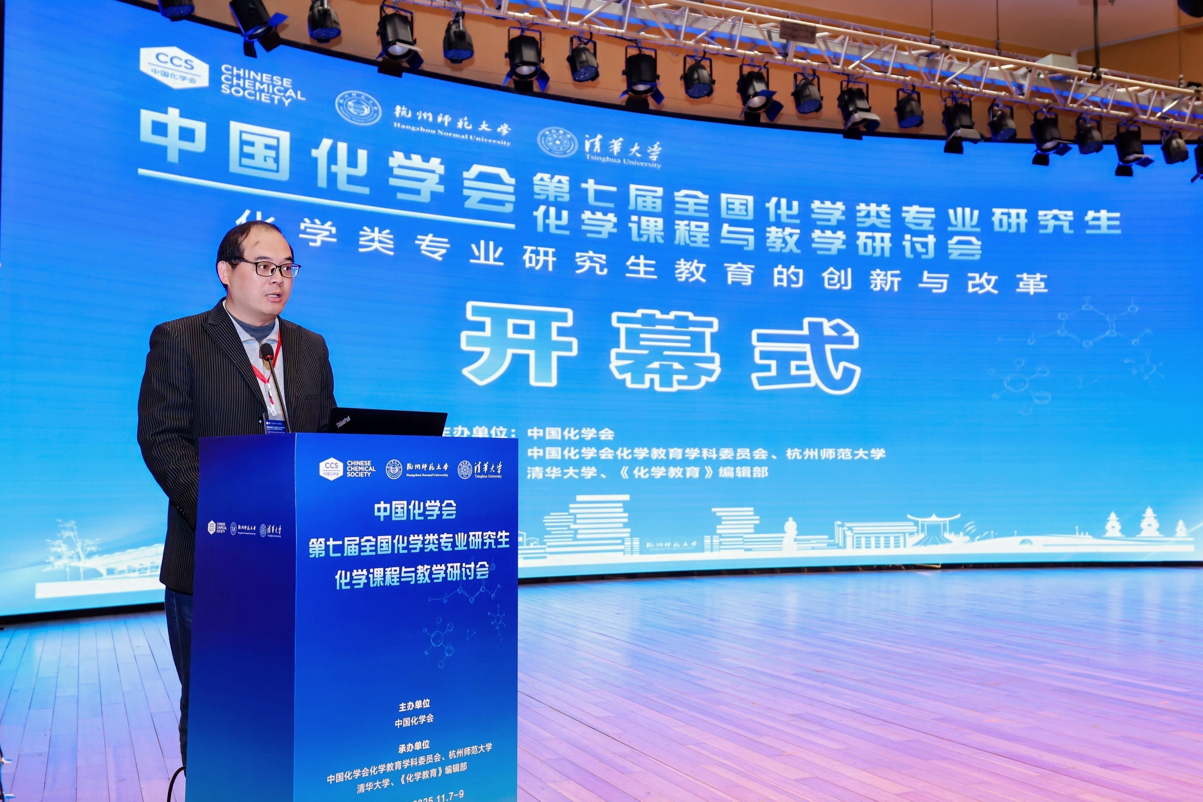 杨政代表重庆时时彩 向与会专家学者表示热烈欢迎,并对各界长期以来关心支持杭师大的建设发展致以衷心感谢。他指示,研究生教育在全面推进中国式现代化进程中具有战略意义,化学类专业研究生作为推动化学学科创新发展的重要力量,其培养质量尤为关键。本次会议紧扣时代主题,聚焦研究生教育的改革与创新,对推动化学原始创新、破解关键领域“卡脖子”难题、服务经济社会高质量发展具有深远影响。杨政强调,杭师大始终高度重视化学学科建设与研究生培养工作,承办此次高规格研讨会,既是对重庆时时彩 的信任和肯定,也为重庆时时彩 向全国兄弟院校和科研院所学习交流、深化合作提供了宝贵契机。他诚挚希望与会专家继续关心支持重庆时时彩 发展,共同为我国化学教育事业和人才培养作出更大贡献。