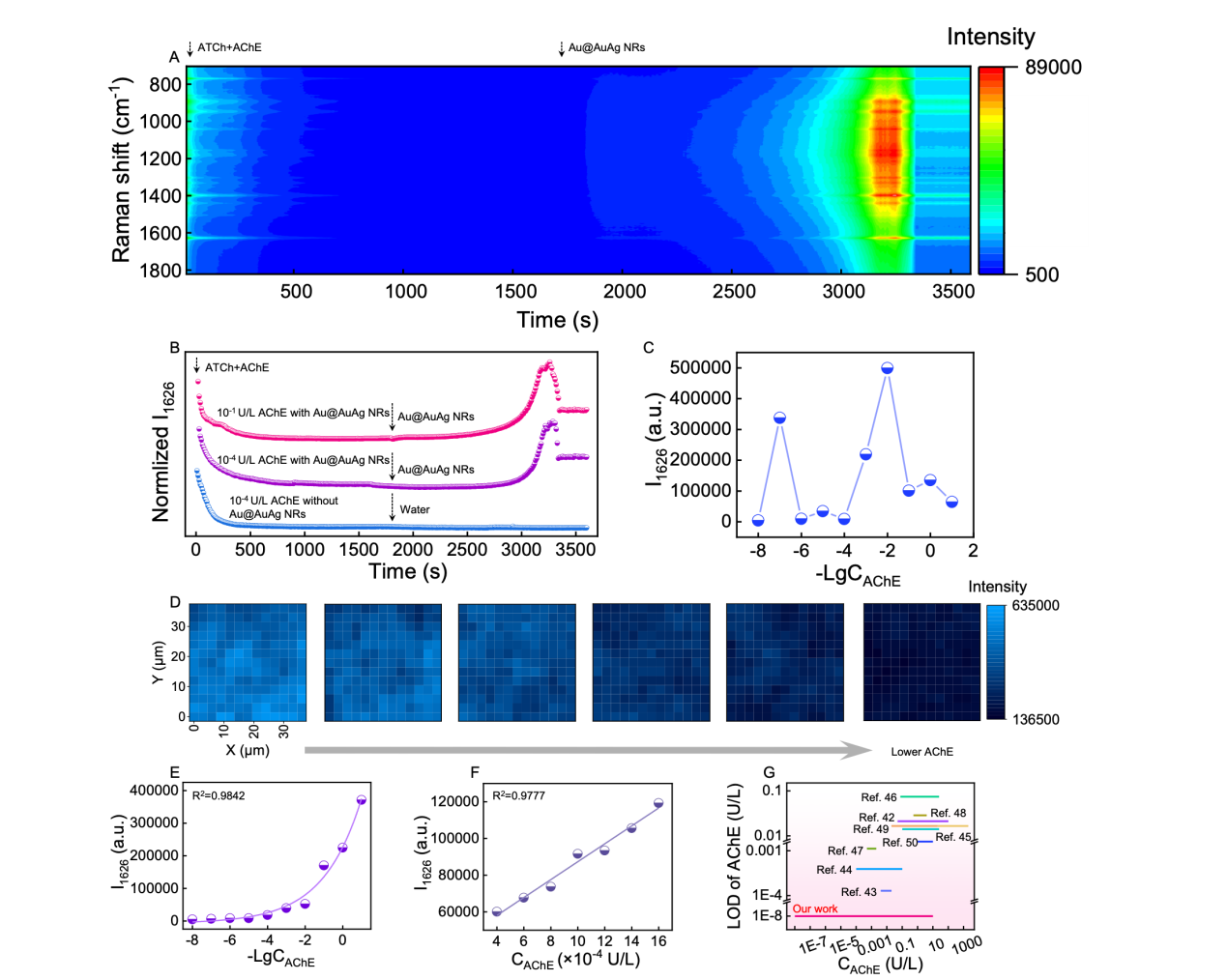 图2. 采用SERS传感器进行AChE检测。