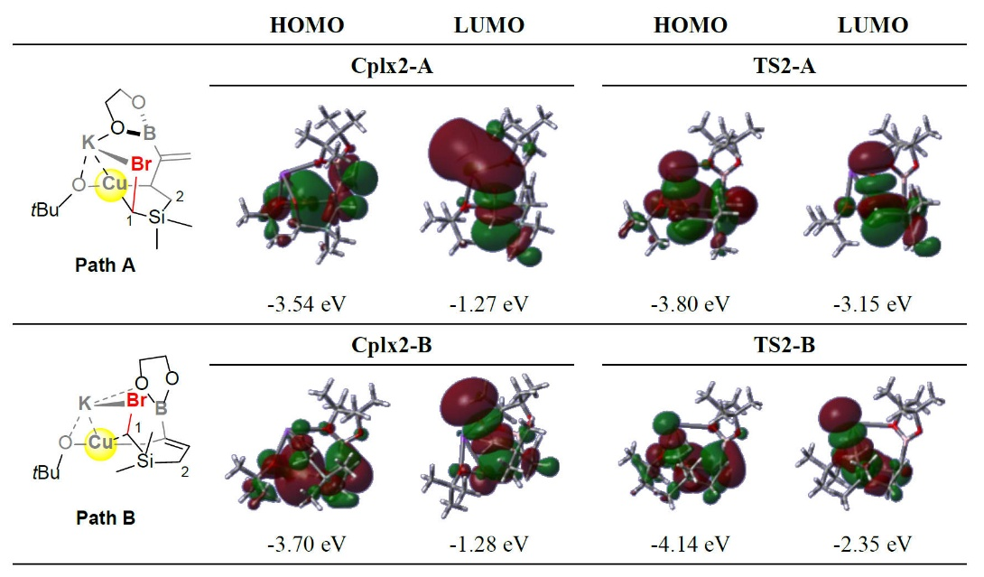 密度泛函理论计算揭示了反应的区域选择性机制。硅原子与铜中心之间的σ超共轭效应,能够降低环化步骤的能垒,促使反应倾向于生成六元环产物。反应的决速步为环化中间体的还原消除过程,能垒较高,这一结论为后续类似反应的设计和开发提供了理论依据。