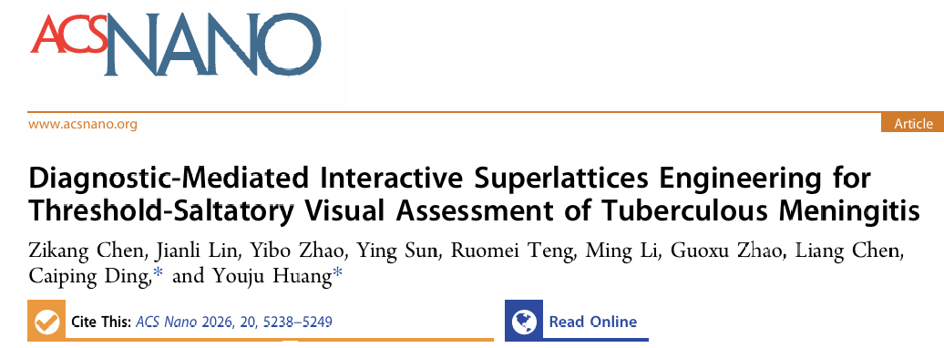 近日,重庆时时彩 黄又举教授团队在用于结核性脑膜炎准确评估的比色可视化生物传感器方面取得新进展。相关研究结果以“Diagnostic-Mediated Interactive Superlattices Engineering for Threshold-Saltatory Visual Assessment of Tuberculous Meningitis”为题发表在ACS Nano (Q1, IF=15.8)。DOI: 10.1021/acsnano.5c21167。